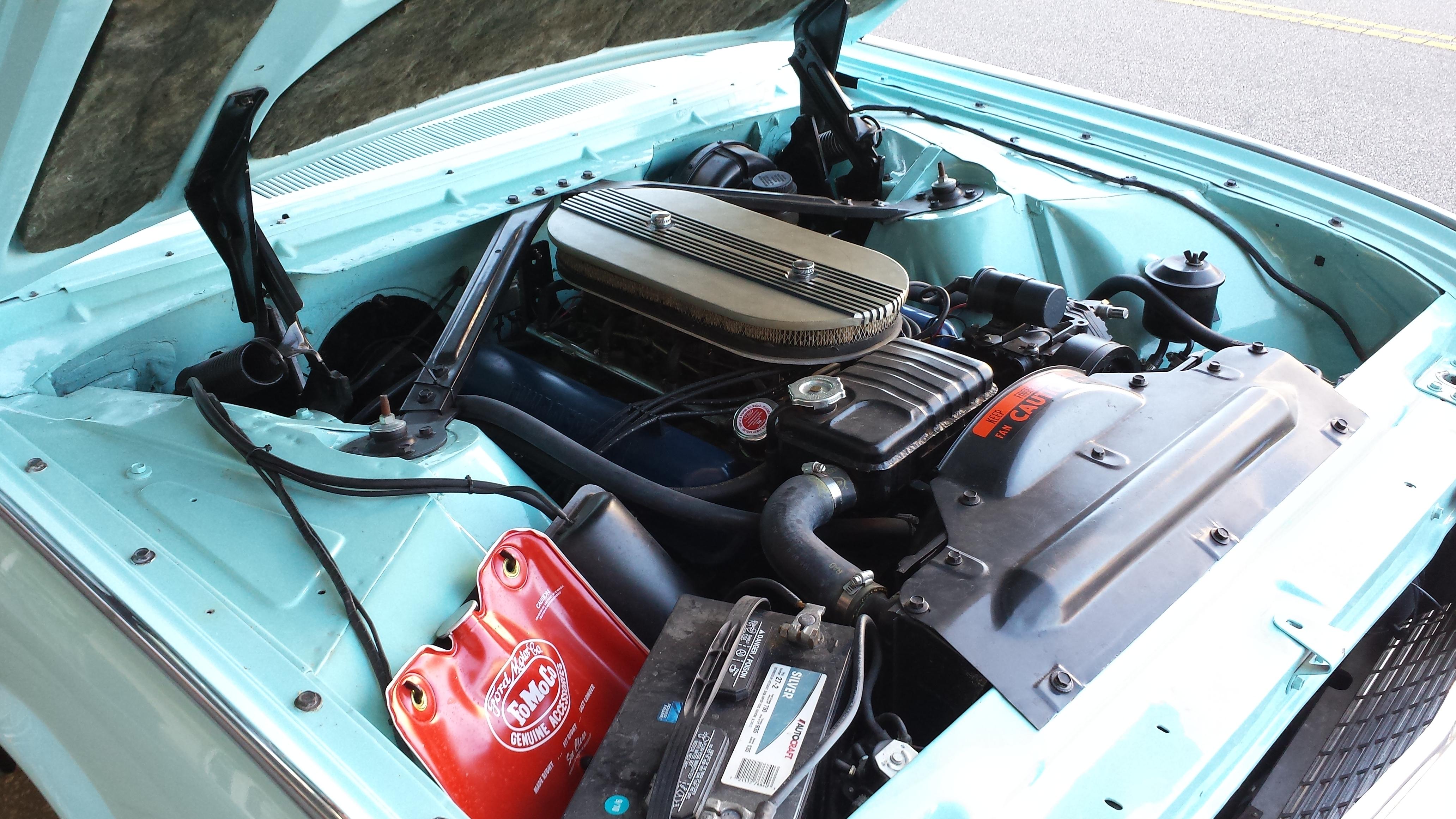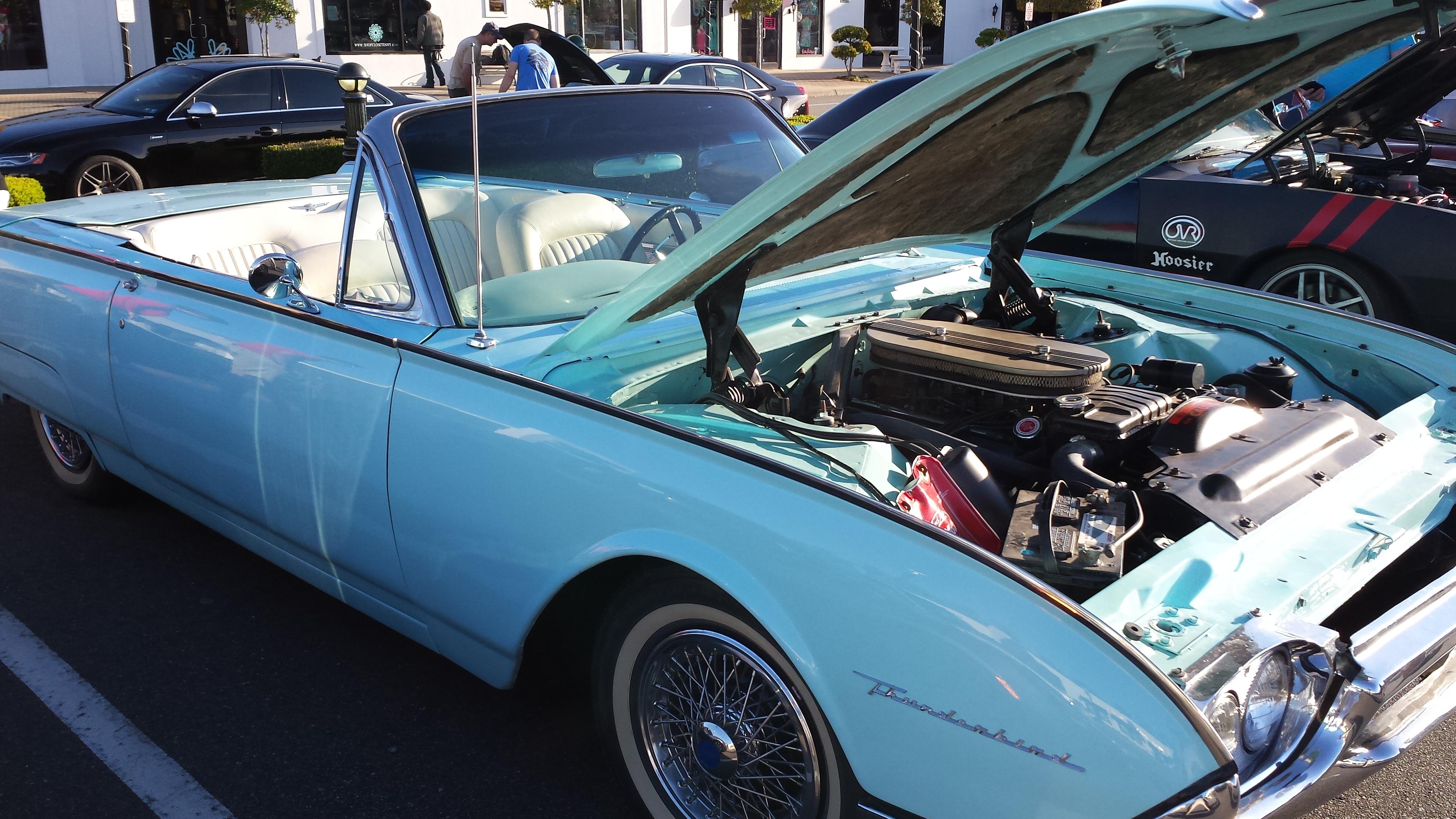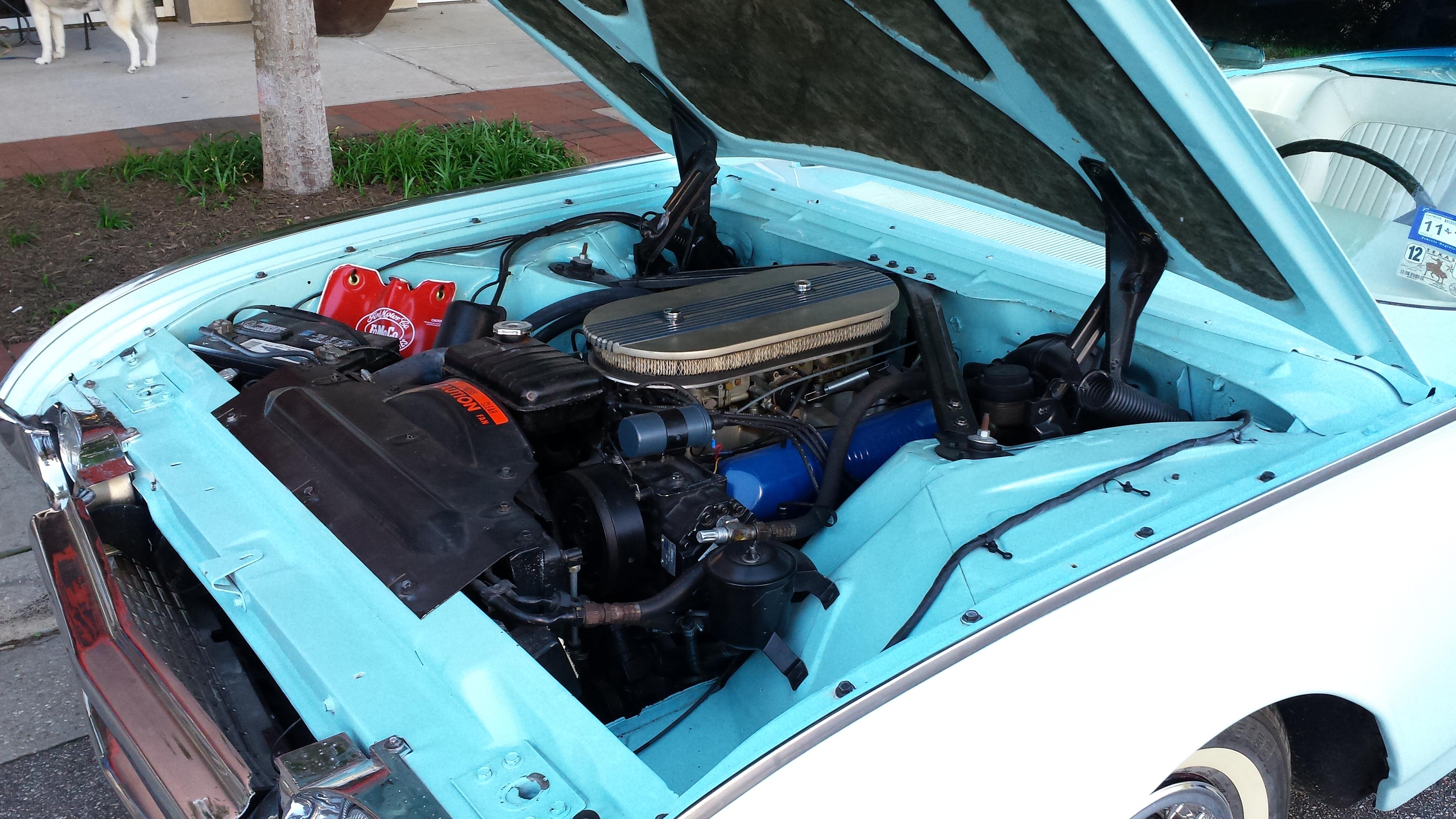 Saw this at Cars and Coffee in Town Center Virginia Beach. It sounded very healthy as it drove us. Under the hood was a 6 pack. Ford made their V8 available with Three Two barrel carbs. We called them a six pack.