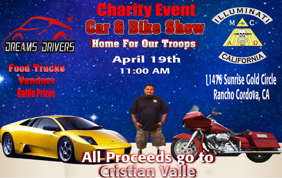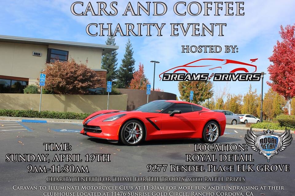 Tomorrow April 19, our host is Royal Detail Bendel place Elk Grove CA. From 9-11am. Free coffee, cars, raffles and more. All proceeds benefit A Home for Our Troops, Veteran Christian Valle. Please check out our FB and website for further details. This is one of many charity fundraisers we do throughout the year.
