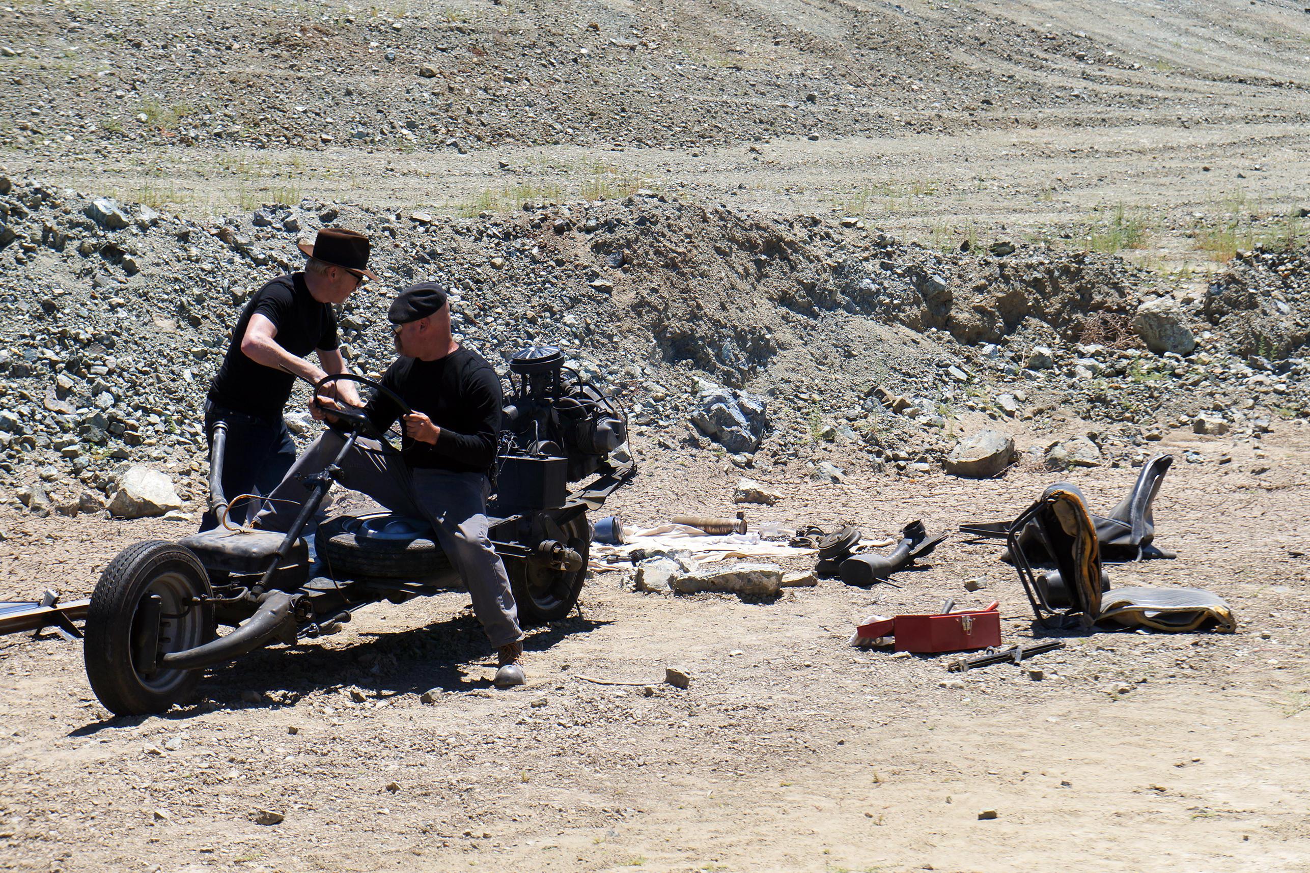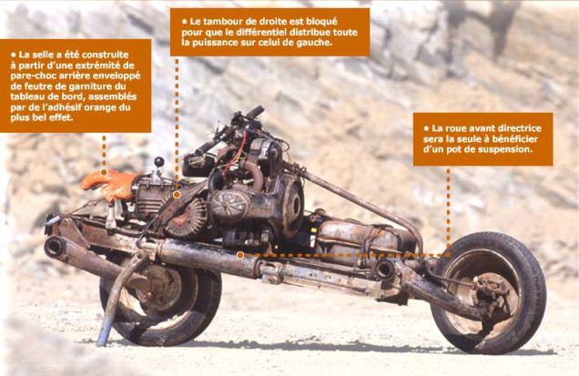 French man is caught in the desert with a 2CV with 2 flat tires and only 7 days of food. This sounds like the beginning of a bad joke. But evidently he converted his 2CV into a motorcycle using the 2 good wheels/tires and road to safety.