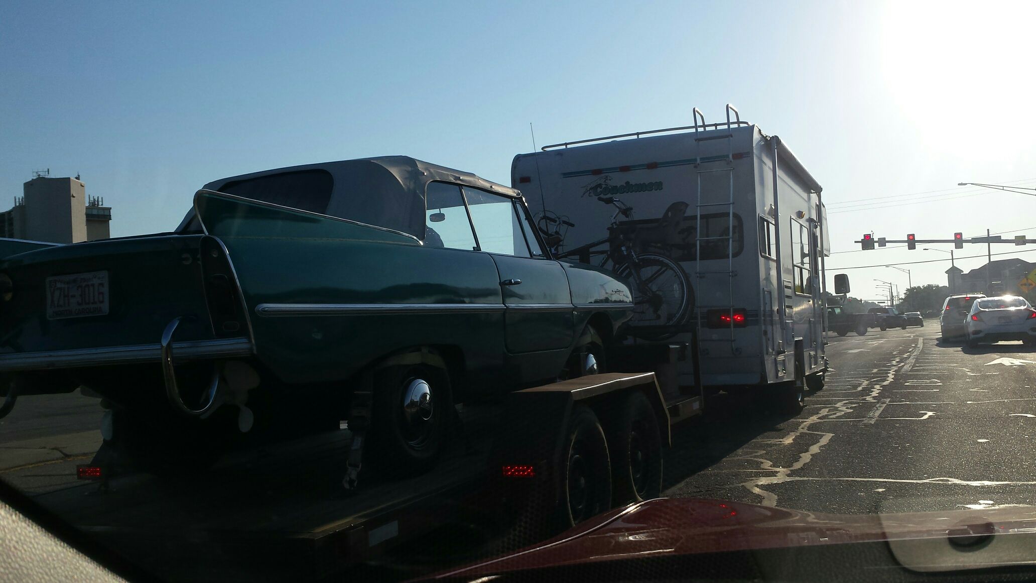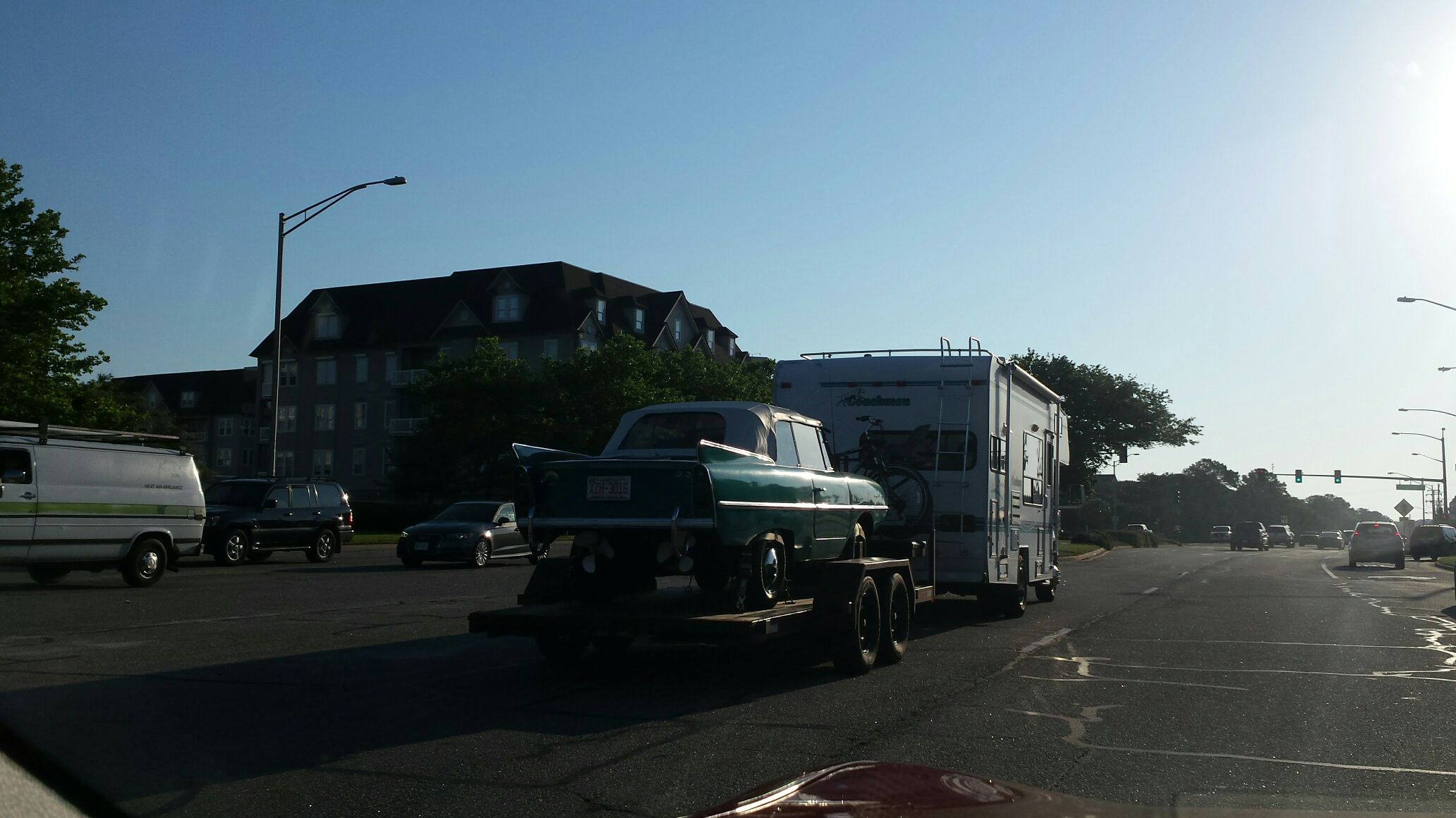 I saw this amphicar being towed behind a camper. Both hir car when camping and boat.If you know this person or anyone with an amphicar ask them to post details.Sorry for the sun angle.