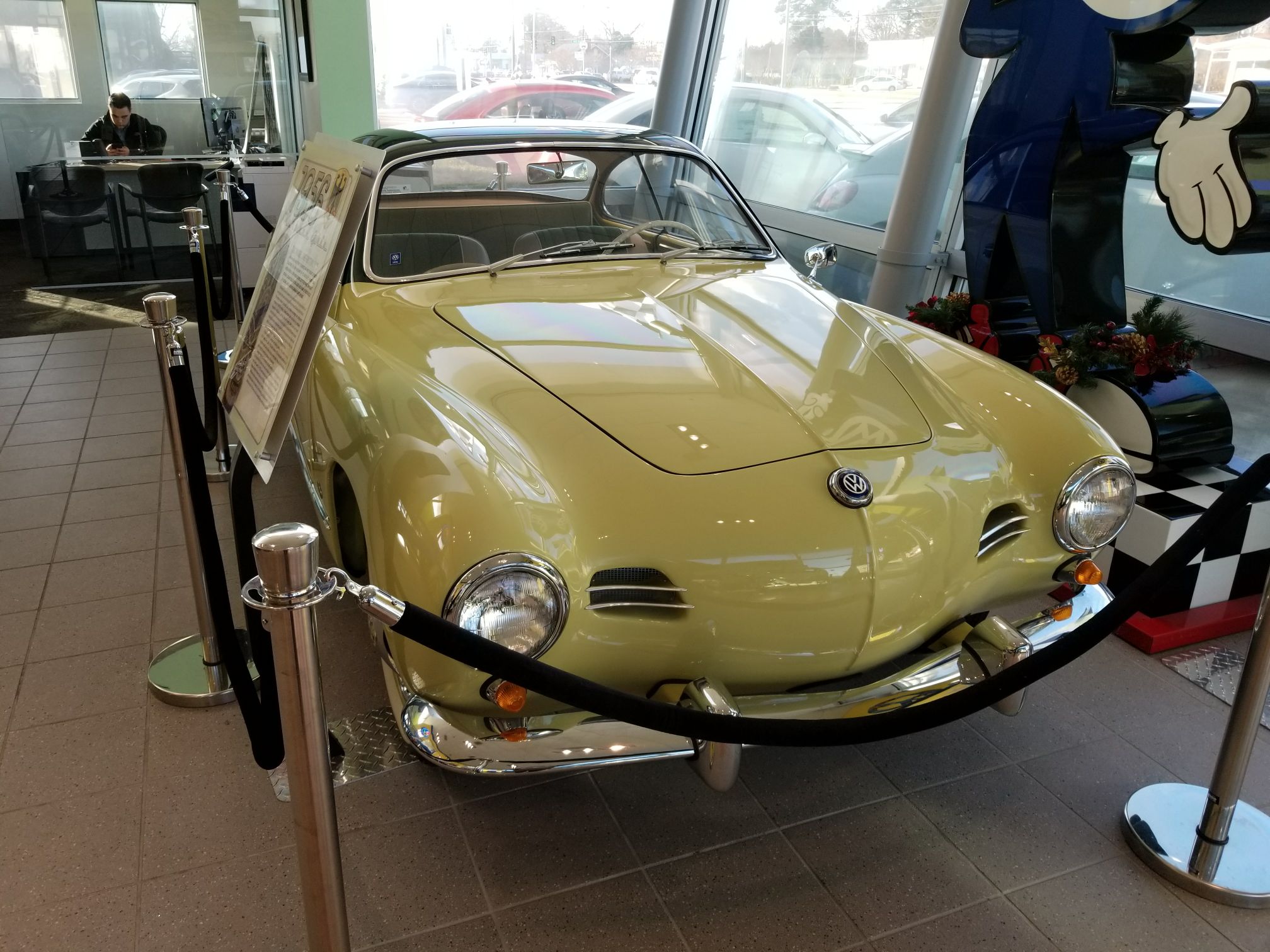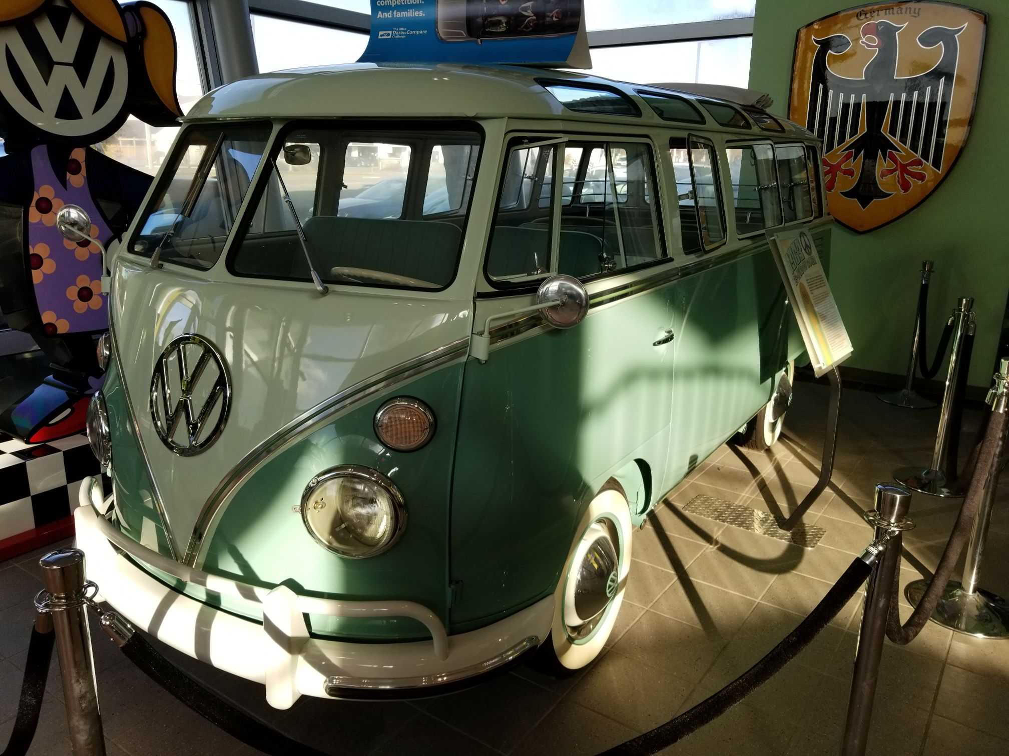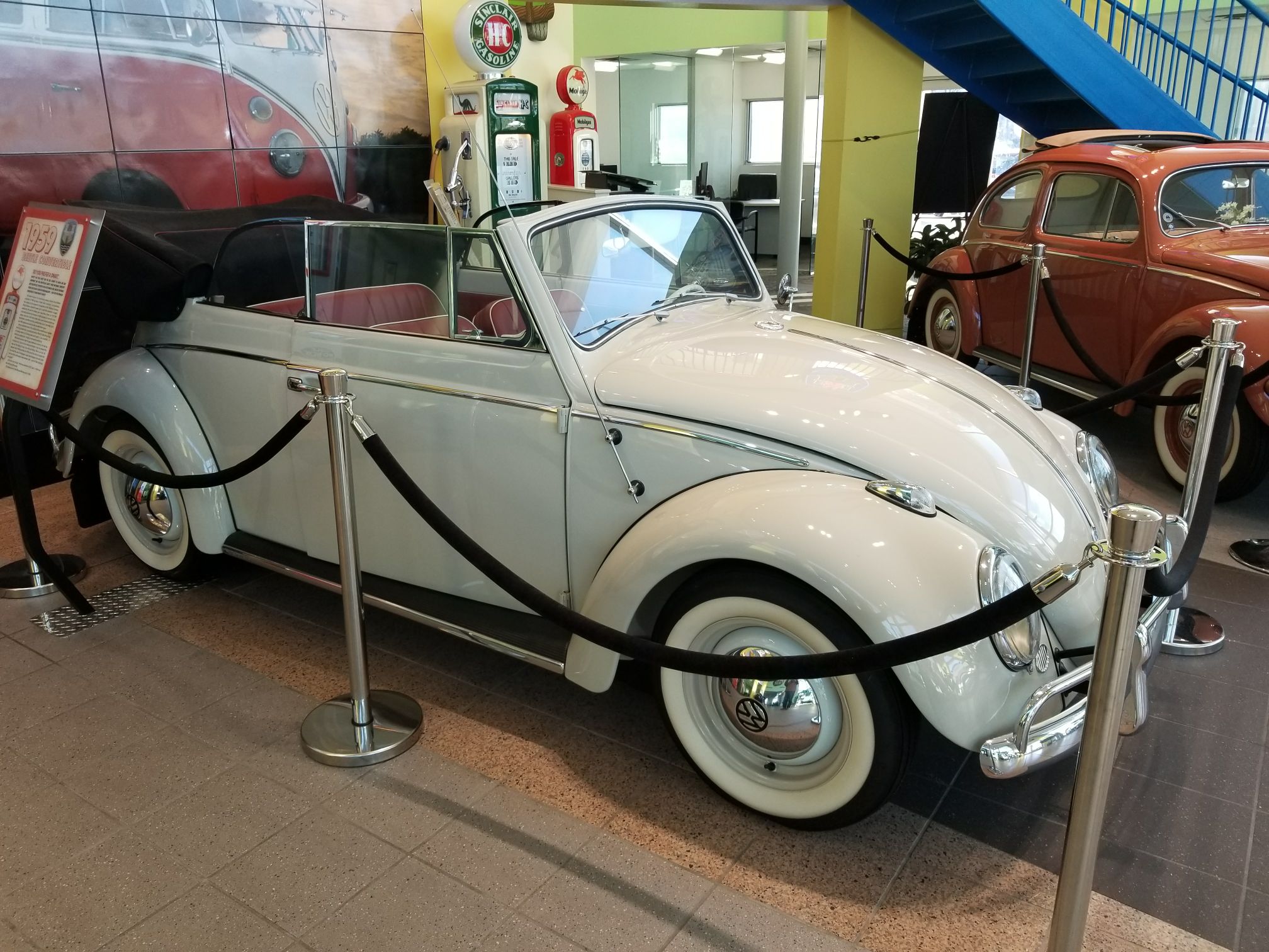 Two busses a Karmann Ghia and two beetles
