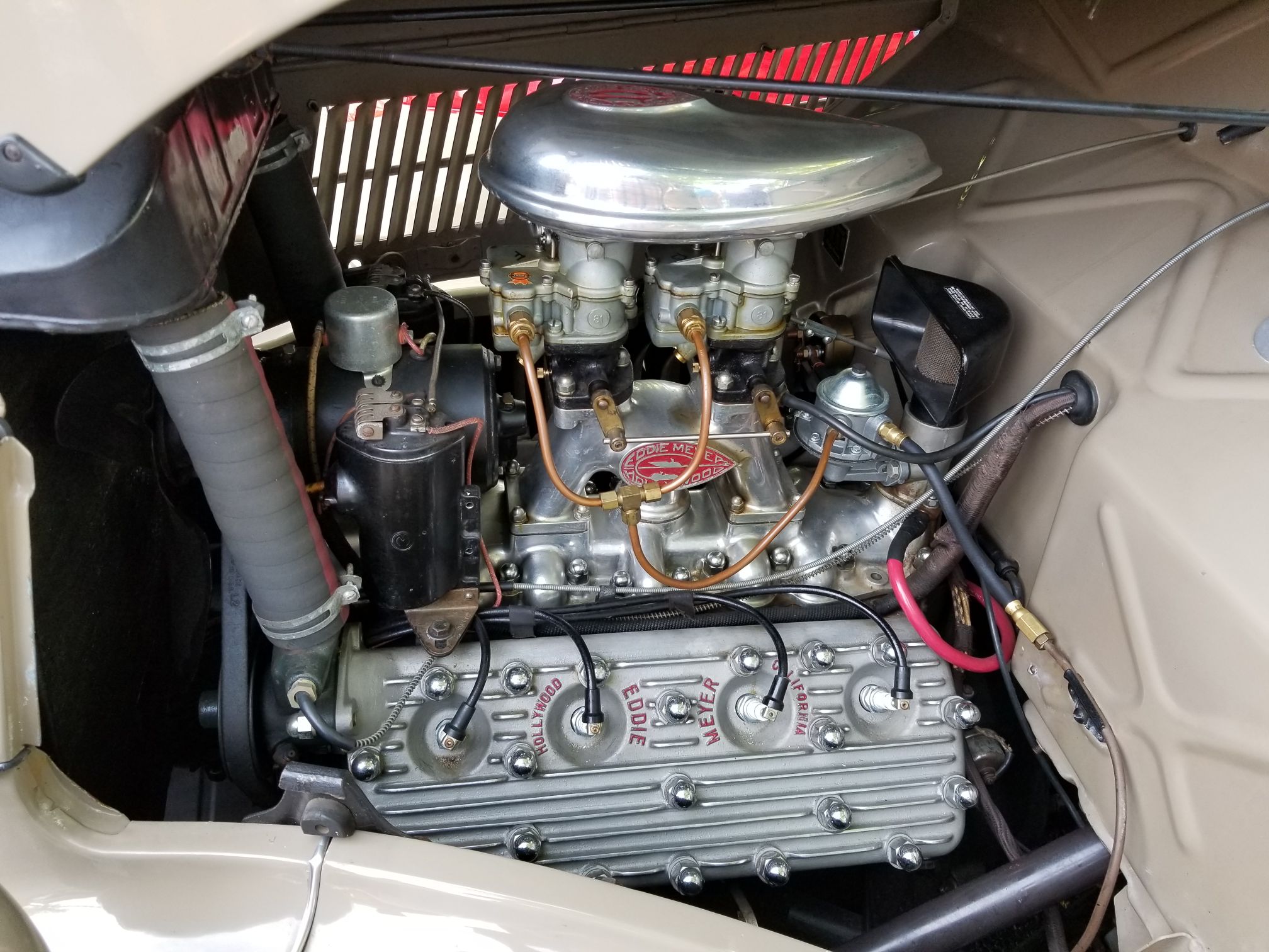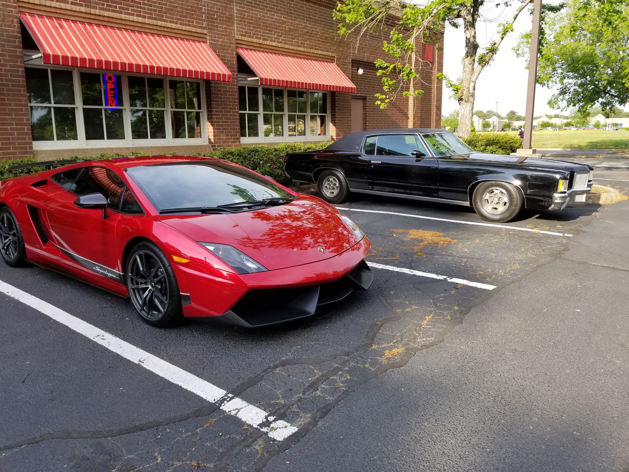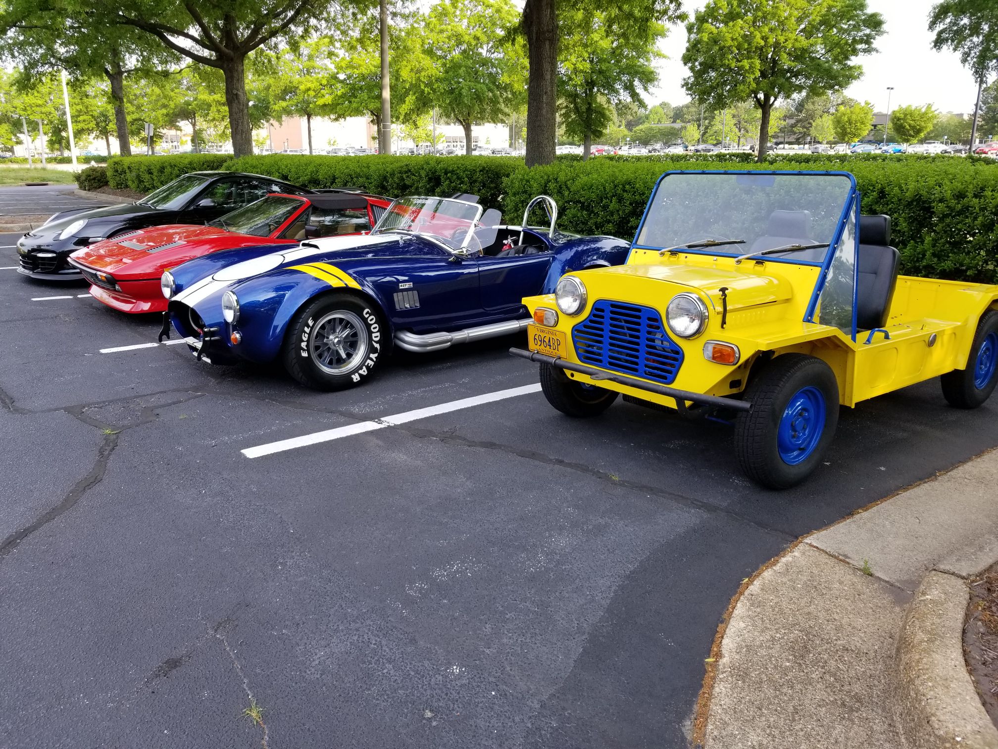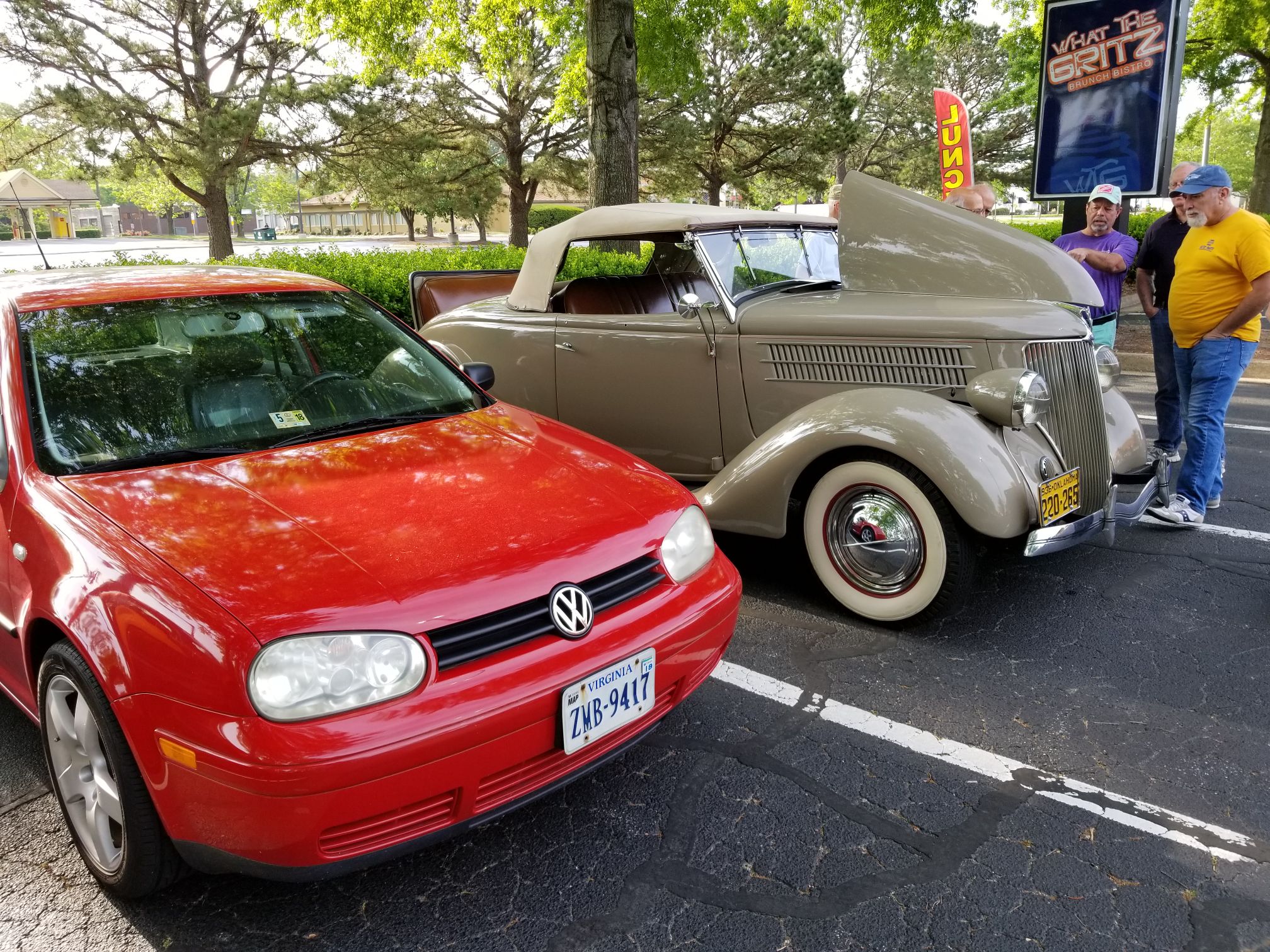 Old time hot rod and a brand new Porsche
